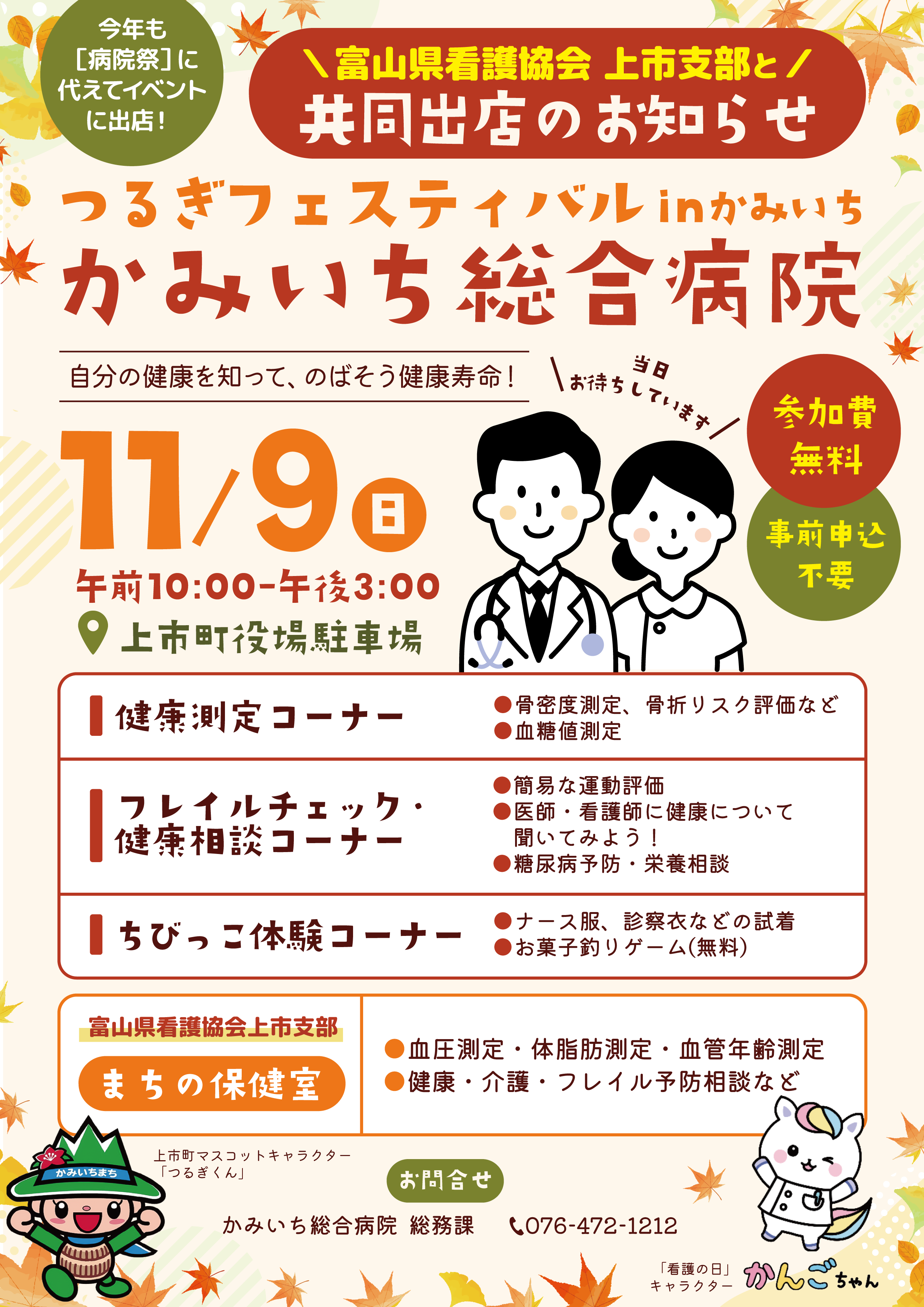 かみいち総合病院事務局総務課 TEL 076-472-1212(代表)